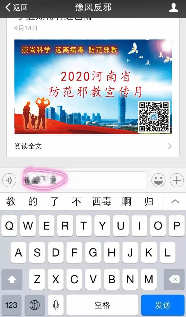 每天上午9点开始,关注豫风反邪微信推送文章,点击文章底部“阅读原文”进入答题环节,参与2020年河南省防范邪教宣传月知识竞答。